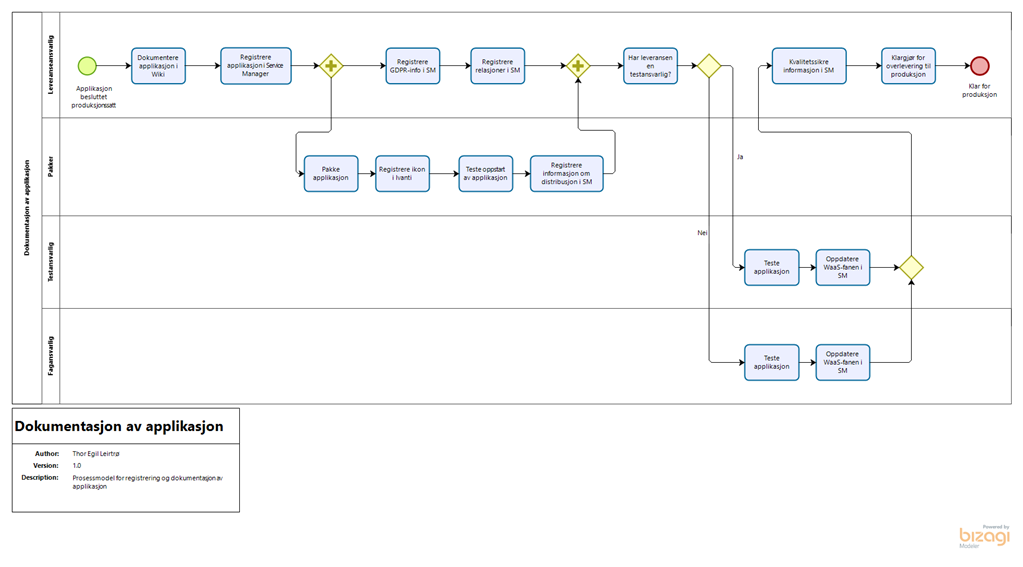 Prosessmodell for registrering og dokumentasjon av ny applikasjon.