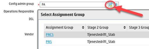 Noen felter har en knapp for å slå opp og bekrefte kobling mot eksisterende referanser i Service Manager. Om du skriver en del av navnet får du opp en dialog for å velge riktig referanse. Bruk alltid denne knappen for å bekrefte at du har riktig referanse og låse koblingen mot denne.