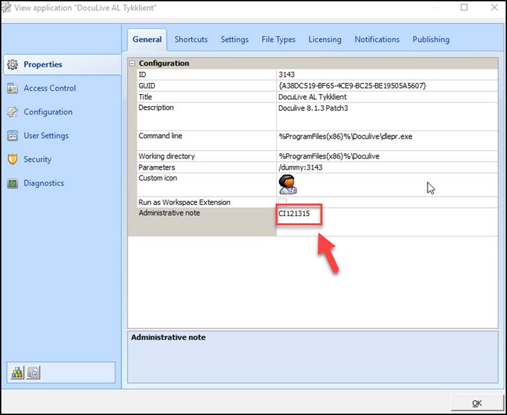 CI-Identifier – og ingen ting annet – må legges inn i Administrative Note feltet i Ivanti som vist under: